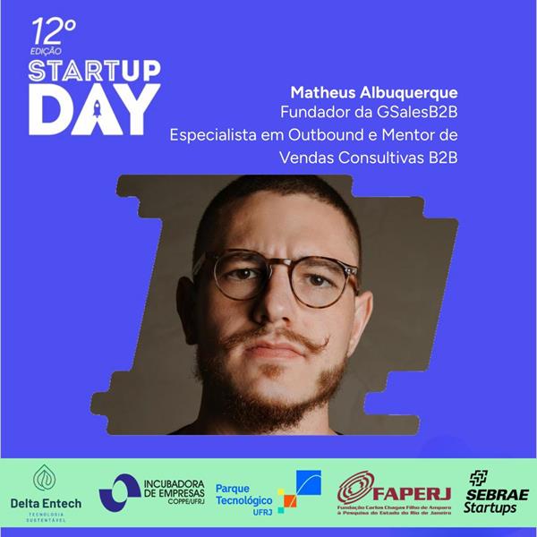 Neste sábado (21), o Rio de Janeiro sedia a 12ª edição do Startup Day, movimento nacional do Sebrae Startups que conecta empreendedores e agentes do ecossistema de inovação. Um dos grandes destaques da programação presencial no CRAB (Centro de Referência do Artesanato Brasileiro) será a participação de Matheus Albuquerque, fundador da Grow Sales B2B, especialista em outbound e mentor de vendas consultivas.